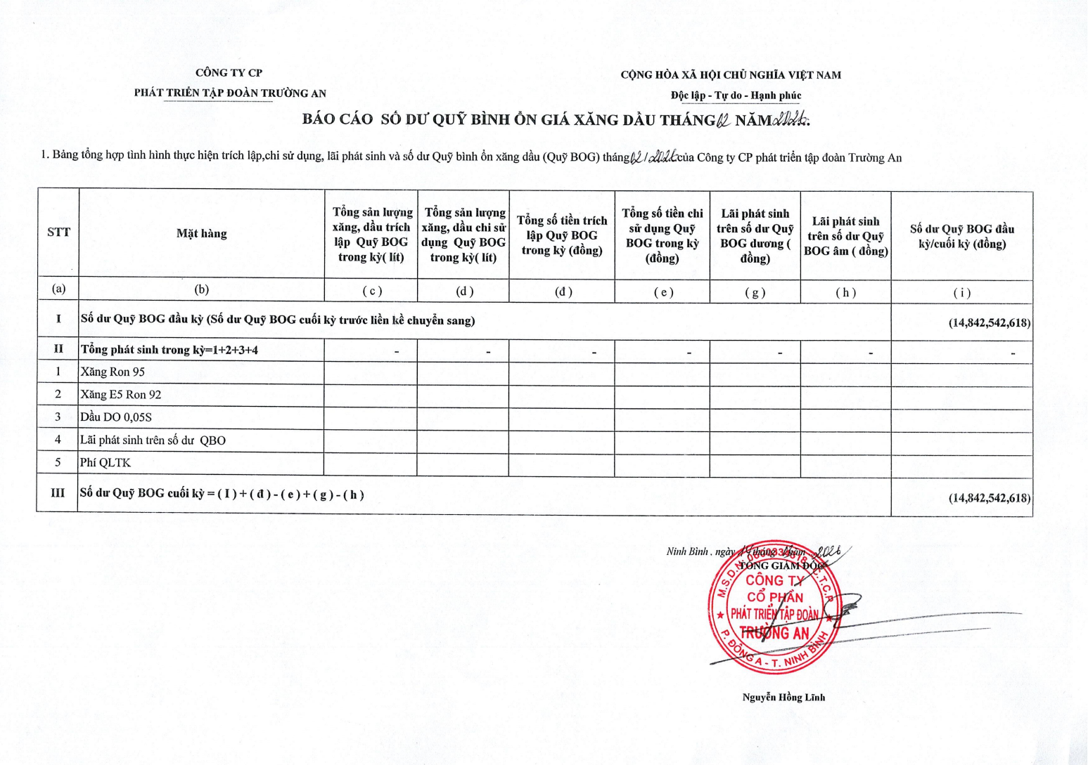 BÁO CÁO SỐ DƯ QUỸ BÌNH ỔN GIÁ XĂNG DẦU THÁNG 2 NĂM 2026